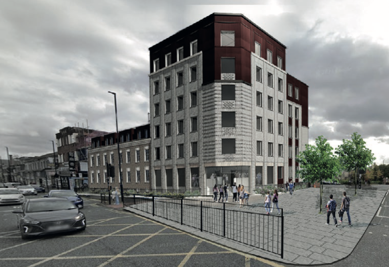 Part demolished site with planning for 25 apartments. Developed a new strategy to purchase the building next door to create a larger 110-bed student accommodation block.